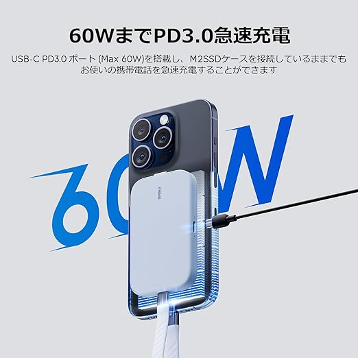 PULWTOP M.2 NVMe 2230 SSD ケース 外付け マグネット式 NVMe 2230/ 2242/ 2260/ 2280 SSD to USB-C エンクロージャ iPhone 16 15 Pro Max ProRes用 1*PD 60W + 1*USBC 2.0/3.5mm Audio & Mic + 1*USB C 3.2 Gen2 10Gbps a | PCBASE