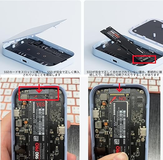 【PCIe NVMe SSDエンクロージャ ハブ】このマグネット式 USB Type-C M.2 SSD ケースはNVMe プロトコル (B+M キー/ M キー) SSDカードと互換性があり、サイズ: 2230/2242/2260/2280のPCIe3.0 PCIe3.0 NVMe M.2 SSDに対応し、最大 2TB の容量拡張をサポートします。ご注意:1. SSDカードを含まれない。2. SATA SSDカードとヒートシンクのあるSSDカードには非対応です。3. SSDがうまく認識されるよ
