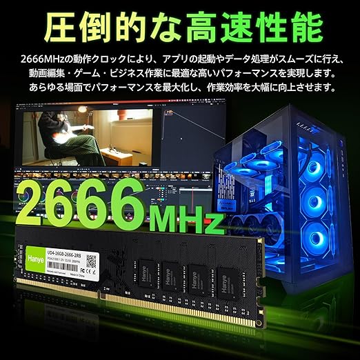 デスクトップPC用メモリ 16GB PC4-21300(DDR4-2666) 288pin DIMM Hanye 1.2V CL19 UD4-16GB-2666-2R8 国内正規品 a | PCBASE