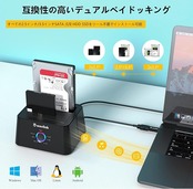 2.5インチと3.5インチのSATA接続ハードディスクを2台搭載可能になります。同時に、パソコンなしでHDDとSSDのまるごとコピー機能付きです。ご注意:オフラインクローニングの場合、本製品をPCに接続しないてください。また、ソースディスクの容量がターゲットディスクの容量より小さいことを確認してください。