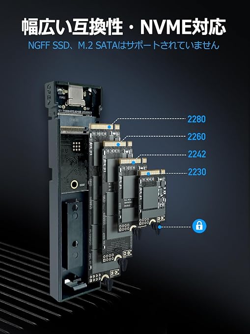 【M.2 NVMe SSD 外付けケース】★ご注意:こちらの商品はM.2 NGFF/SATAタイプには非対応となります。VCOM NVMe M.2 SSD エンクロージャーは高性能チップを搭載され、4TB容量のM.2 NVME 2230/2224/2260/2280 SSDを対応します。※SSDを認識しない場合、ぜひお気軽に弊社までお問い合わせください。