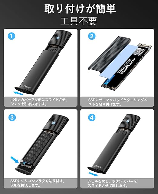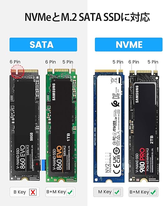 【互換性】M.2 SSD ケースは、M.2 NVMe M Key/B+M