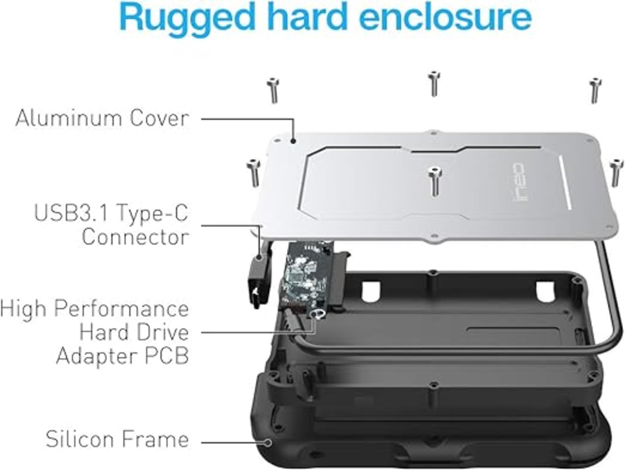 ineo 2.5インチ USB 3.1 Gen2 Type C 頑丈な防水&耐衝撃外付けハードドライブエンクロージャ 9.5mm & 7mm SATA HDD SSD [C2580c] a