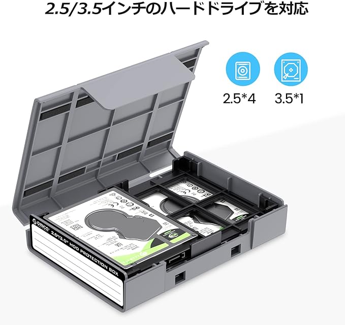 【2.5/3.5インチ収納】1つのボックスに最大1台の3.5インチHDDまたは4台の2.5インチHDDを収納できます。5点セット販売しますので、多くHDDを持っている人に最適です。ロック式デザイン、手軽にHDDを取り替えます。