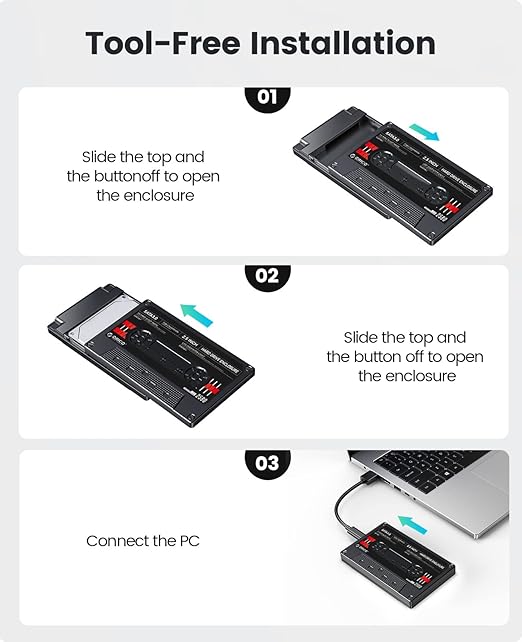 ORICO 2.5インチ HDD ケース USB C 3.2 Gen 1-SATA III コンピュータ HDD ケース 7/9.5mm HDD SSD 対応 ポータブル 外付けハードディスク ケース 最大6TB PS4 Samsung WD Seagateに対応 2580-C3 a | PCBASE