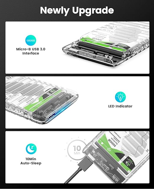 【内部の高い可視性】ORICO 2.5インチ HDD ケースは高品質な透明クリスタルPC素材を使用。クリアSSD ケースのデザインで、開けずに中のドライブを見ることができます。ハードディスクを外部からのダメージから保護します。