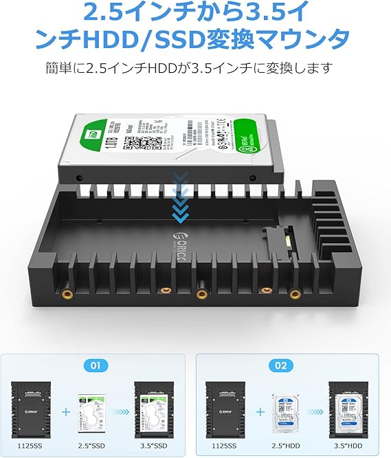 ORICO 2.5 → 3.5変換 2.5インチ HDD / SSD 変換マウンタ SATAインターフェース内蔵 HDDケース 3.5インチ 変換ブラケット ネジ付き ブラック 1125SS a | PCBASE