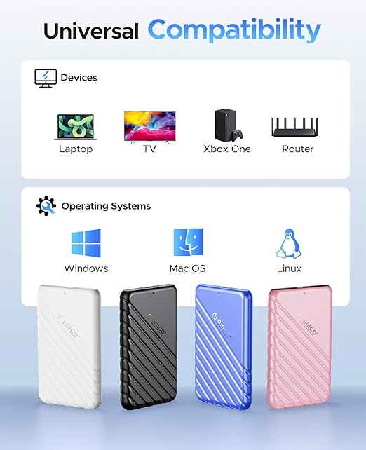 【2.5インチ HDD ケース】ORICO HDD ケースは、2.5インチSATA I/II/III SSD & HDDをPC、ノートパソコン、ルーター、PS4、Xboxなどに簡単に接続して、データ転送やストレージの拡張を行い、古いハードディスクのデータを回復します。