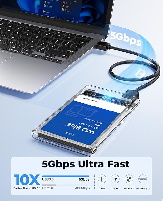 ORICO 2.5インチ HDD / SSD ケース USB3.0 ハードディスクケース UASP対応 5Gbps転送 6TB(9.5mm以下)まで対応 静電気防止 PC材料 透明な 外付け SATA3.0 ドライブ ケース 2139U3 a | PCBASE