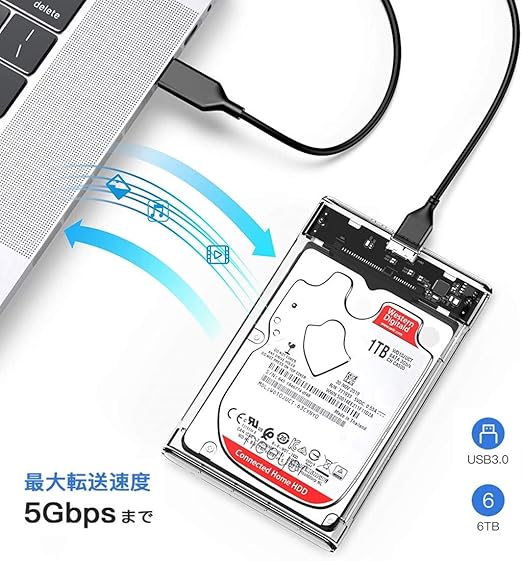 【ハイスピード】SATA3.0 To USB3.0通信プロトコルを採用し、USB3.0接続で約5Gbps(理論値)の伝送スピードになれます。通常のUSB2.0と比べて10倍の伝送スピードをアップしました。UASPにも対応、コンピューターのストレージ・バックアップ能力を大きく向上させます。