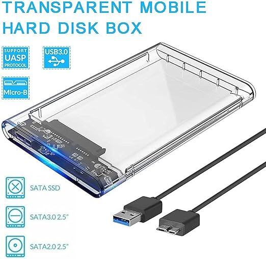 JUTOSU 透明な 2.5インチ HDD/SSDケース USB 3.0接続 SATA対応 HDD/SSD 外付け ドライブ ケース ネジ&工具不要 簡単着脱 最大転送速度 5Gbps Windows/Mac/Linux/PS3/PS4/Xbox等適用 a | PCBASE