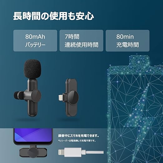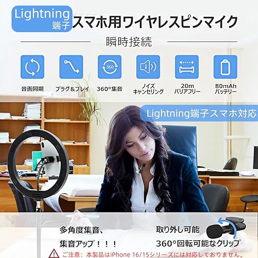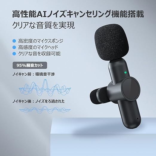 【最新バージョン&機能満載!】弊社がピンマイクに専念して、何万回もテストした、安定した革新的デザイン製品を生み出します。高性能AIノイズキャンセリング、リアルタイム自動同期、360°集音など業界最新技術を採用した上、優美な弧線と精美な外観、長時間使用性能なども備えています。最新の技術で、他社の製品とは異なり超便利機能搭載!接続されているても、録画したビデオを聞くことができます!*iPhone/iPad専用ピンマイクです。