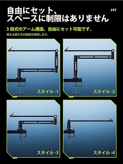 CACENCAN M05 マイクスタンド アーム マイクアーム ブームアームスタンド モニターの下から マイククリップ&3/8"-5/8"インチ付き 角度調節 伸縮 折り畳み式 コンデンサーマイク用 ダイナミックマイク用 声音収録 動画配信 Youtobe生配信 実況 会議などに最適 日本語説明書付き 黒色 a | PCBASE