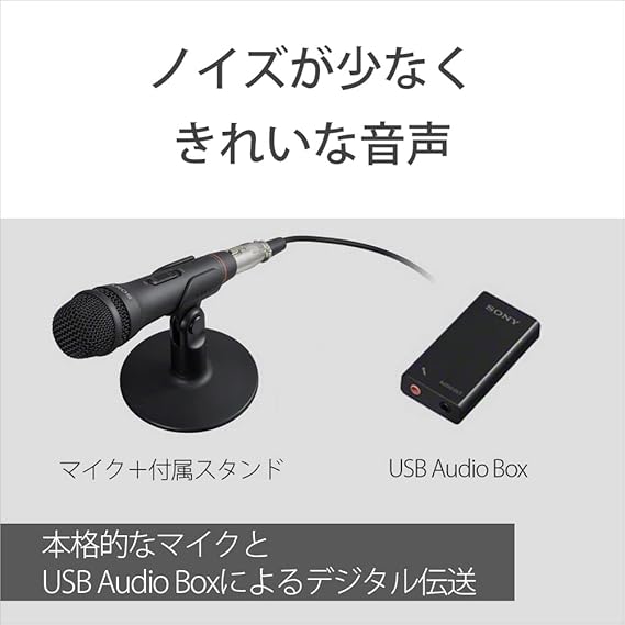 付属品:マイクコード、マイクホルダー、テーブルスタンド、USB Audio Box、専用USBケーブル