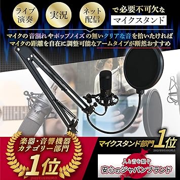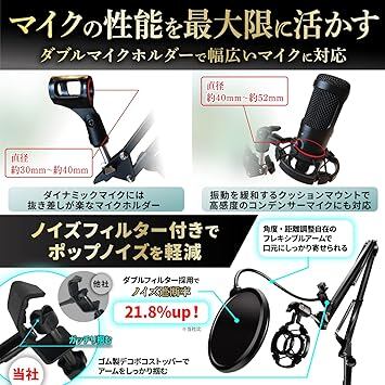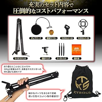 KTSOUL マイクスタンド卓上 マイクアーム スタンド コンデンサーマイク用 マイククリップホルダー 収納袋付き ゲーム実況 収録 配信 (マイクアームポップガード) a