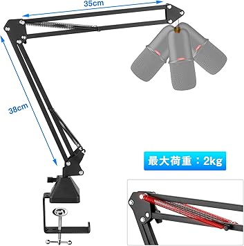 【安定性】このマイクブームアームは、各アームに高品質のデュアルサスペンション