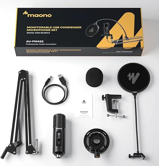 [MAONO] マイク usb コンデンサーマイク【 USB マイクロホン/アームスタンド セット 】 pc用マイク usbマイク 配信用マイク (AU-PM422) a
