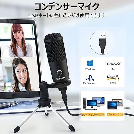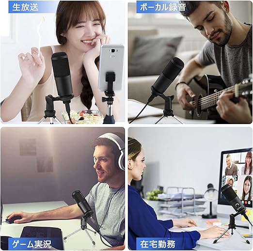 コンデンサーマイク USBマイク PC用マイク 録音マイク 単一指向性 三脚マイクスタンド付属 音量調節 ゲーム実況 Skype 在宅勤務 YOUTUBE 生放送 Windows/Mac/PS4対応 a | PCBASE