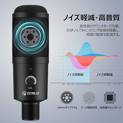 【単一指向性&音声を再現】単一指向性のカーディオイド集音特性を採用しており、振動や湿気に特に弱い、真正面からの音声には感度が高く、約130°の範囲の音を収音できます。プロなサウンドカードも内蔵して、ノイズ抑制技術で、周りの雑音、ホワイトノイズに強く抑えいます、原音を忠实的に再現します。本マイクの最適使用距離は15-30cmで、この距離内で使ったほうがいいです。この距離を超えれば、音量が小さいかもしれません。