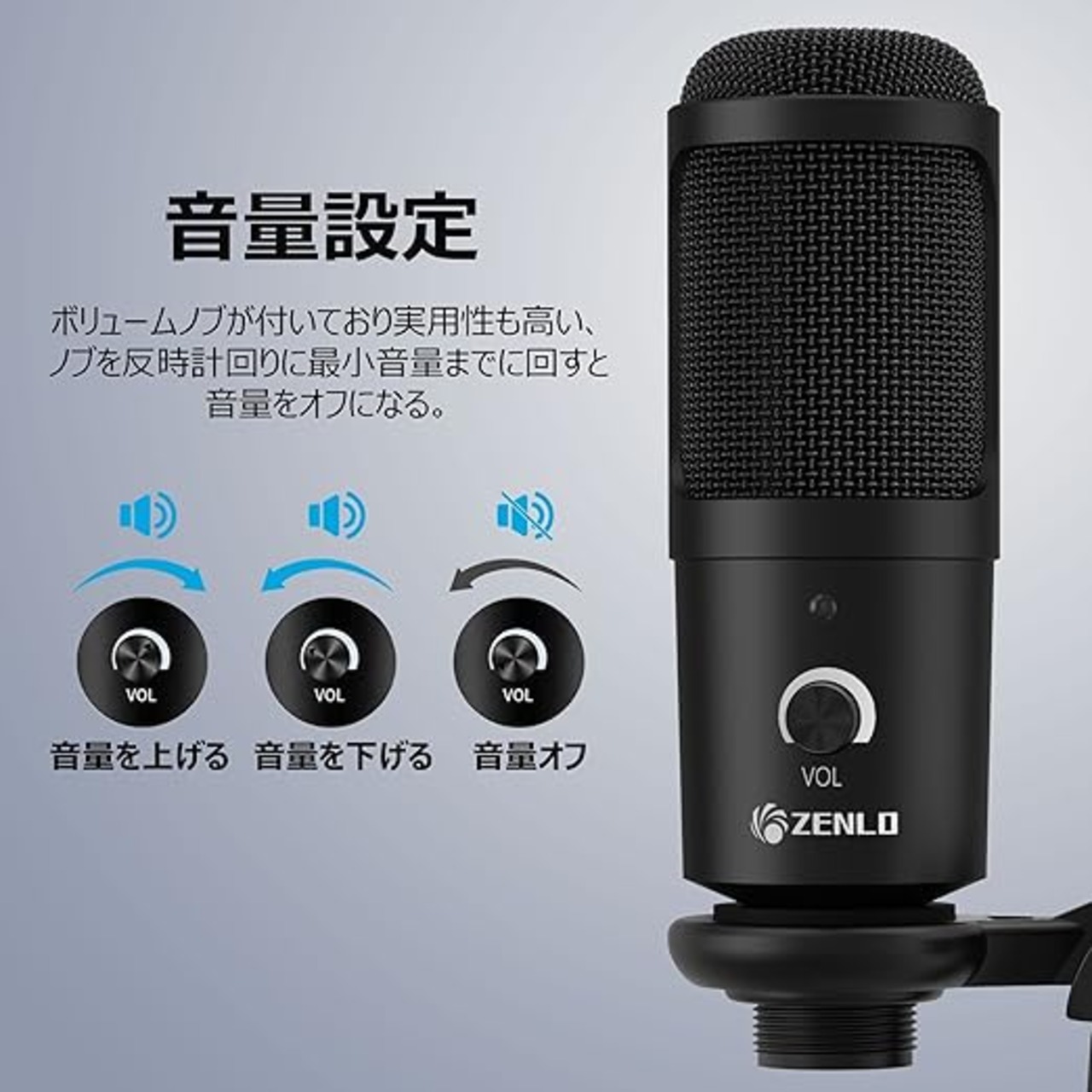 コンデンサーマイク USBマイク PC用マイク 録音マイク 単一指向性 三脚マイクスタンド付属 音量調節 ゲーム実況 Skype 在宅勤務 YOUTUBE 生放送 Windows/Mac/PS4対応 a