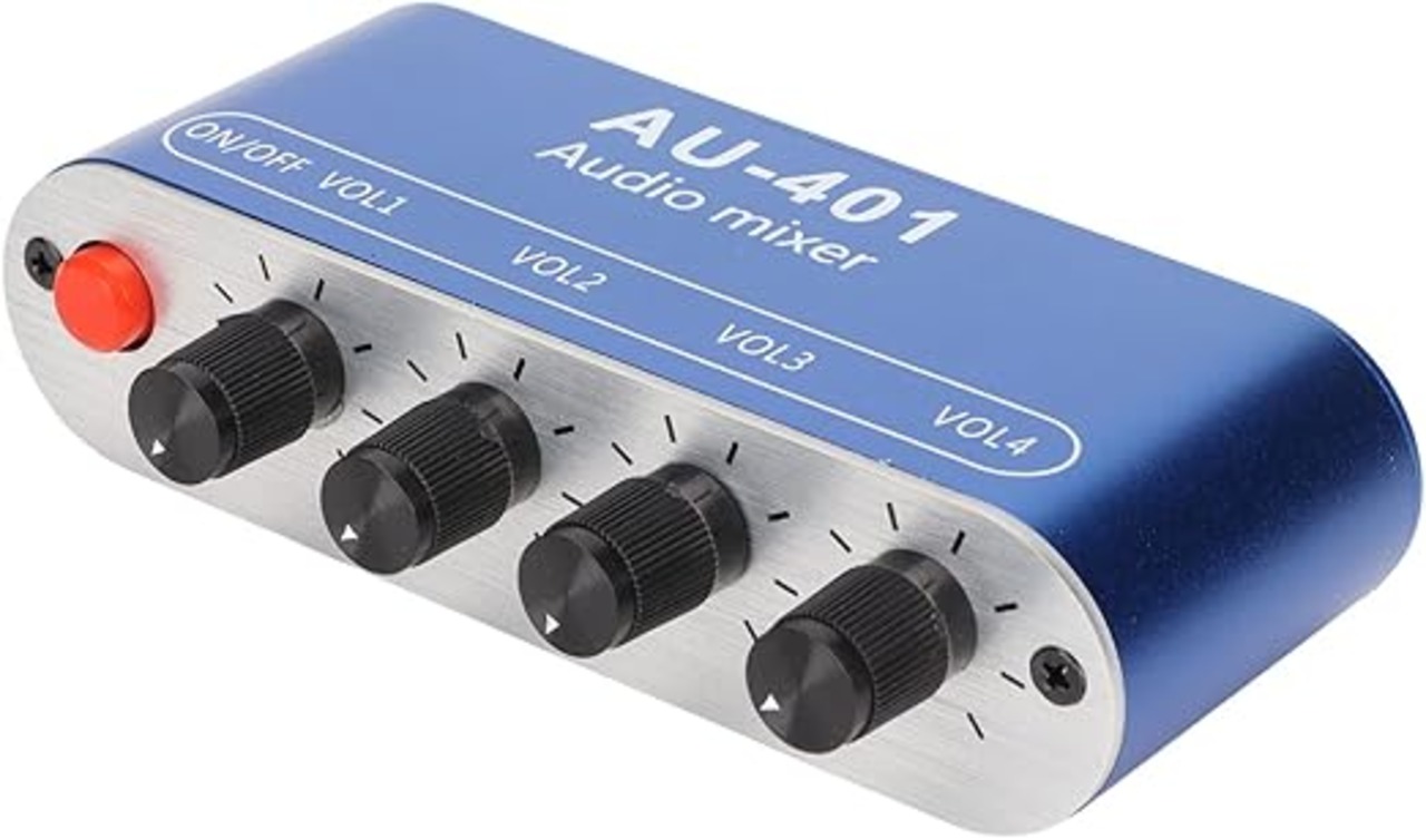 【4入力1出力】このステレオミキサーは4つの入力ソースを1つのステレオ出力にミキシングする能力があります。さらに、各ポテンショメーターを調節することで各チャンネルの音量を個別に制御でき、その音量は他のチャンネルに影響を与えません。
