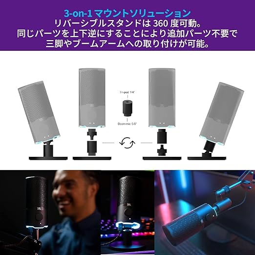 JBL QUANTUM STREAM USBスタンドアロン デュアルコンデンサーUSBマイク/テレワーク/ゲーマー/コンテンツクリエーター/ストリーマー/PC,MAC,PS4,PS5,SWITCH使用可能 ブラック JBLQSTREAMBLK a | PCBASE