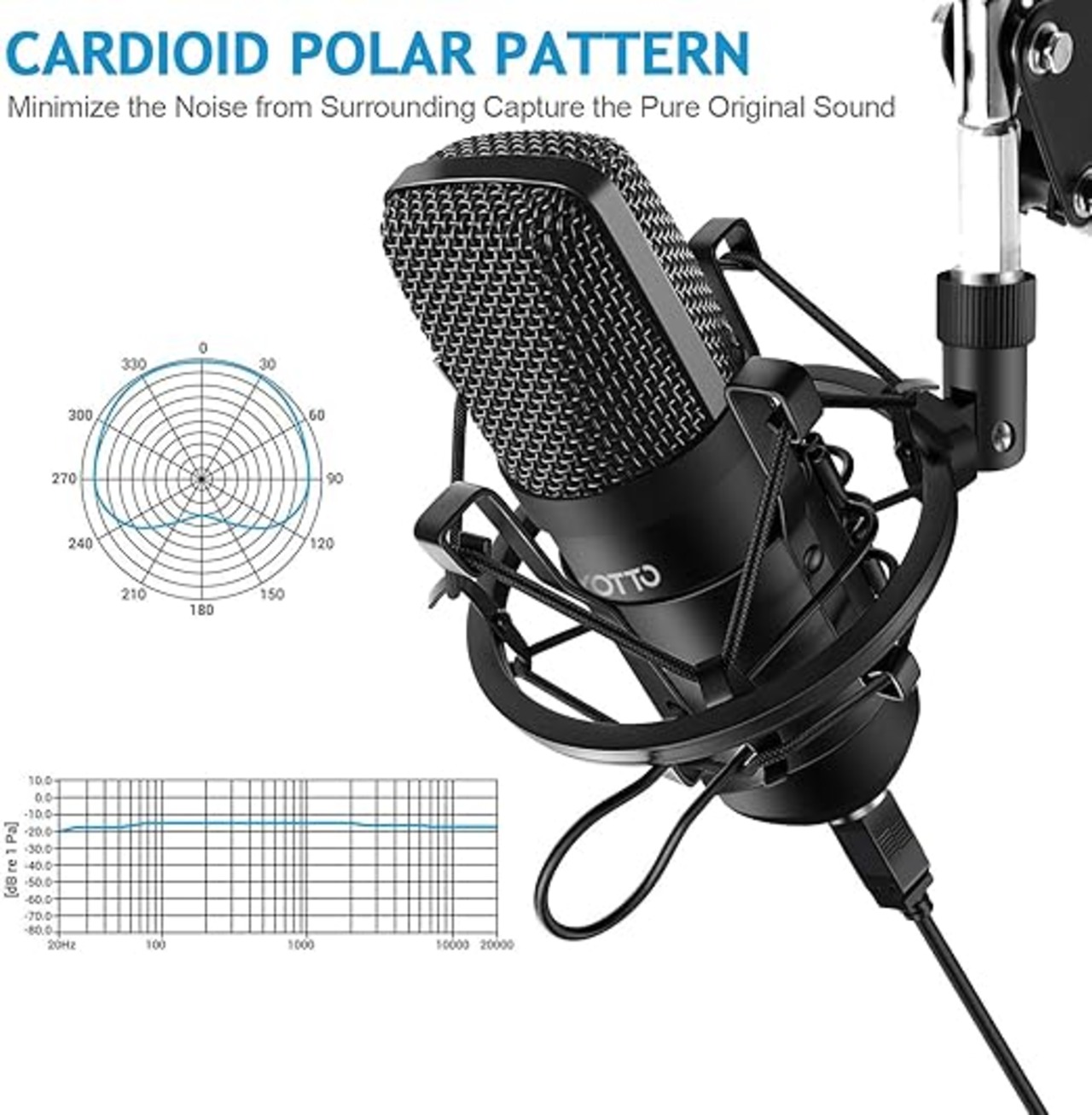 YOTTO USBマイク コンデンサーマイク PC マイクセット マイクスタンド ポップガード アームスタンド付き 録音 生放送 YOUTUBE ゲーム実況 a