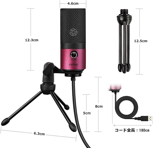 FIFINE USBマイク コンデンサーマイク 単一指向性 PC用マイク ネット通話 在宅勤務 配信 ゲーム実況 宅録 音量調節可能 三脚スタンド付属 Windows/Mac/PS4に対応 K669 a | PCBASE
