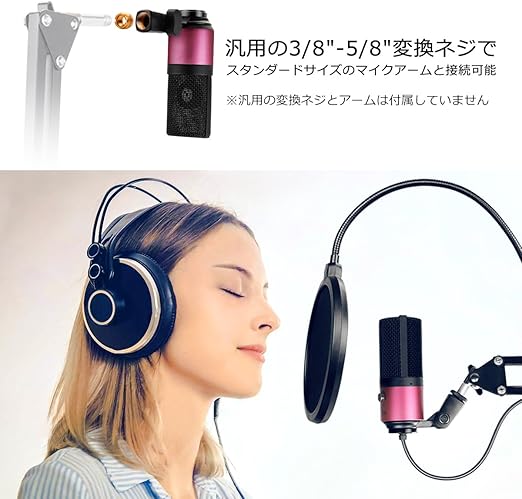 【不思議な金属の質感】本体とマイクスタンドも耐久性に優れた合金で作られたコンデンサーマイク、重さがよく、安定性強化!さらに全体はテクノロジー金属の質感で、とても滑らかな触り心地です。