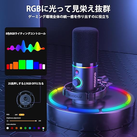 MAONO ゲーミングマイク USB XLR接続 ダイナミックマイク 専用ソフトウェア付属 単一指向性PCマイク ミュートボタン ボリューム調整 RGBライティング付き PC PS4 PS5 オーディオミキサー対応 ゲーム実況 ライブ配信 ポッドキャスト ナレーション録音 PD200XS 黒 a | PCBASE