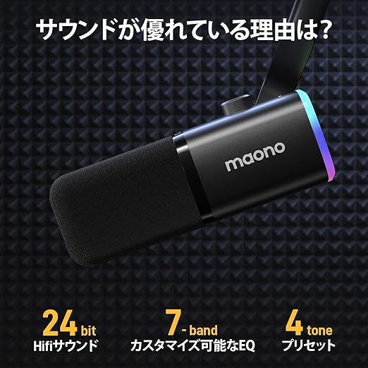 【50%音質向上&音声体験レベルUP】他社のマイクの16ビット/48kHzサンプリングレートと比べ、MAONO PD100XSゲーミングマイクは40Hz-16KHzの周波数特性と高い24ビット/48kHzサンプリングレートを採用しており、常に最高のパフォーマンスを最大限まで引き出して可能、より豊かで明瞭な音声を話している相手に届けられます。音の多い部屋でも、PD100XSマイクのカーディオイドカプセルが周囲の雑音を効果的に遮断し、クリアな音声を正確に捉えるため、ゲームプレイやストリーミングに集中