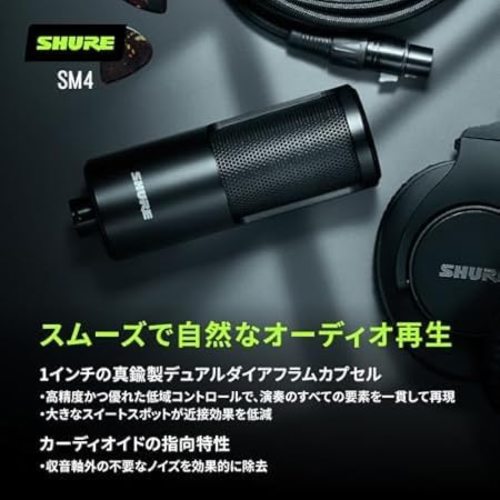 SHURE シュア SM4 ホームレコーディング用マイクロホン SM4-K : コンデンサーマイク XLR 単一指向性 プロ仕様 レコーディング 録音 ボーカル 楽器 ミュージシャン YouTube Vtuber 動画配信 宅録 実況 DTM ゲーム ゲーミング ポッドキャスト コンテンツクリエイター 干渉防止 RFノイズ遮断 【国内正規品/メーカー保証2年】 a | PCBASE