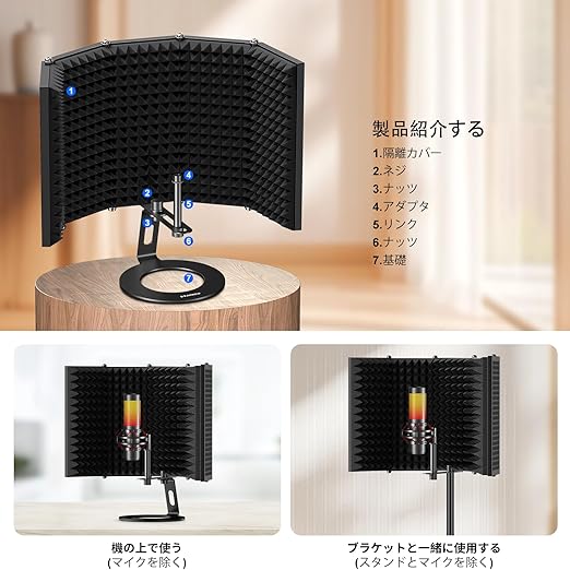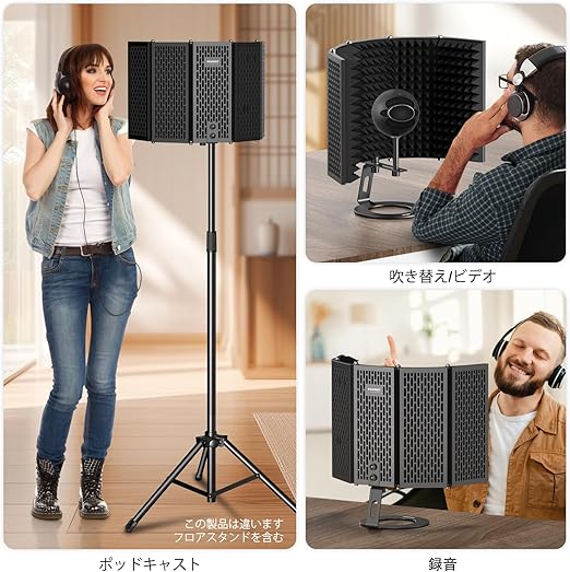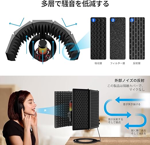 マイクアイソレーションシールドは、頑丈な金属合金とプロ仕様の吸音フォームでできており、軽量で持ち運びに便利です。 スタジオ、ホーム、ポッドキ