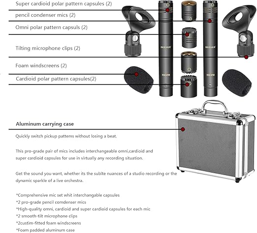 Neewer 2個鉛筆式のコンデンサーマイク 交換可能なオムニ、カーディオイド及びスーパーカーディオイドカプセル、ウインドスクリーン、マイククリップ、ポータブルキャリングケース付き アコースティック木管楽器に対応 a | PCBASE