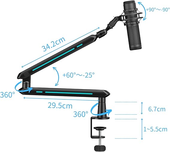 簡単な取り付け::クランプ式でデスクにしっかりと固定できるため、設置や取り外しが簡単で、場所も取りません。これにより、安定性を保ちながらマイクを使用できます。