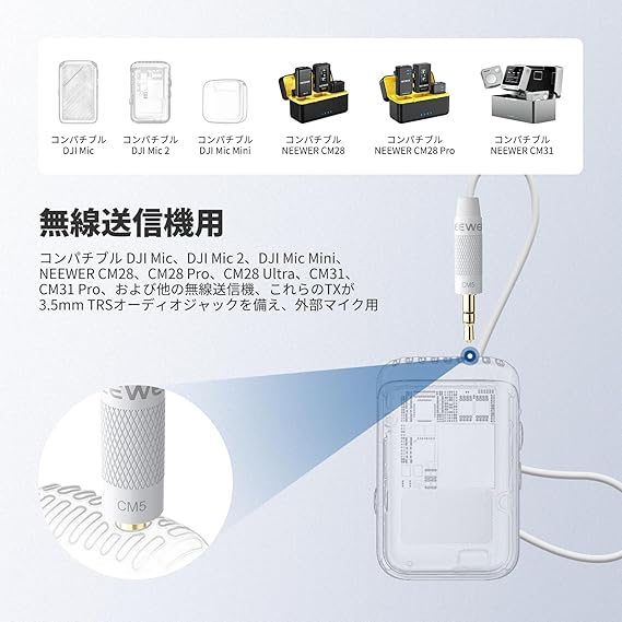 【汎用互換性】3.5mm TRS 金メッキオスプラグを備えた NEEWER CM5 は、3.5mm TRS メスジャックを備えた Android スマートフォン、カメラ、ビデオカメラ、オーディオレコーダー、タブレット、ラップトップに適しています。ラベリアラペルマイクはコンパチブル Rode Wireless GO II 2、コンパチブル DJI無線マイク送信機、NEEWER CM22/CM28無線マイクシステム。ご注意:ソニーGoProとは互換性がありません。