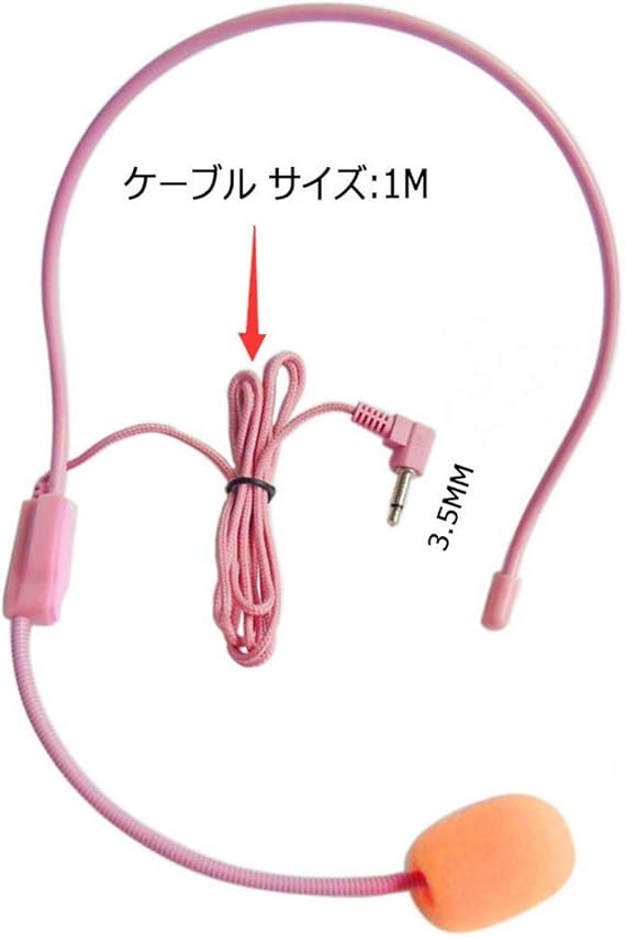 マイクヘッドセット【拡声器用 】有線ヘッドコンデンサーマイク ヘッドセット- に適当 講義、説明会、屋外イベントでの拡声器用3.5mmプラグ ピンク/イエロ/ブラック (1PCS ピンク) a