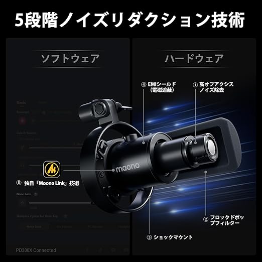 MAONO USB XLR ダイナミックマイク 192kHz/24bit ポッドキャスト用PCマイク 単一指向性 ノイズキャンセリングマイク スタジオ レコーディング ストリーミング コンテンツ作成に PD300XT a | PCBASE