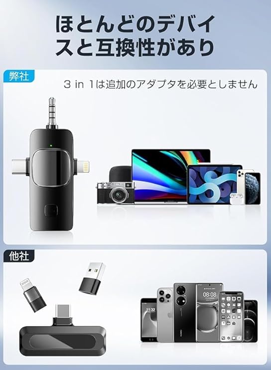 【最新版・高品質音質 】ピンマイクの長年の研究により、ついに革新的なデザインの新製品が誕生しました。 3-in-1レシーバー、高性能AIノイズリダクションチップ、リアルタイム自動同期、360°音取り込みなどの最新技術を採用しています。 自動接続が可能で、1秒で接続が完了します! プラグアンドプレイ。 Bluetooth接続やアプリの設定は不要で、マイクの電源を入れるだけで録音を開始できます。 また、美しい曲線と洗練されたルックス、長期間の使用に耐える性能を兼ね備えています。 他社製品とは一線を画
