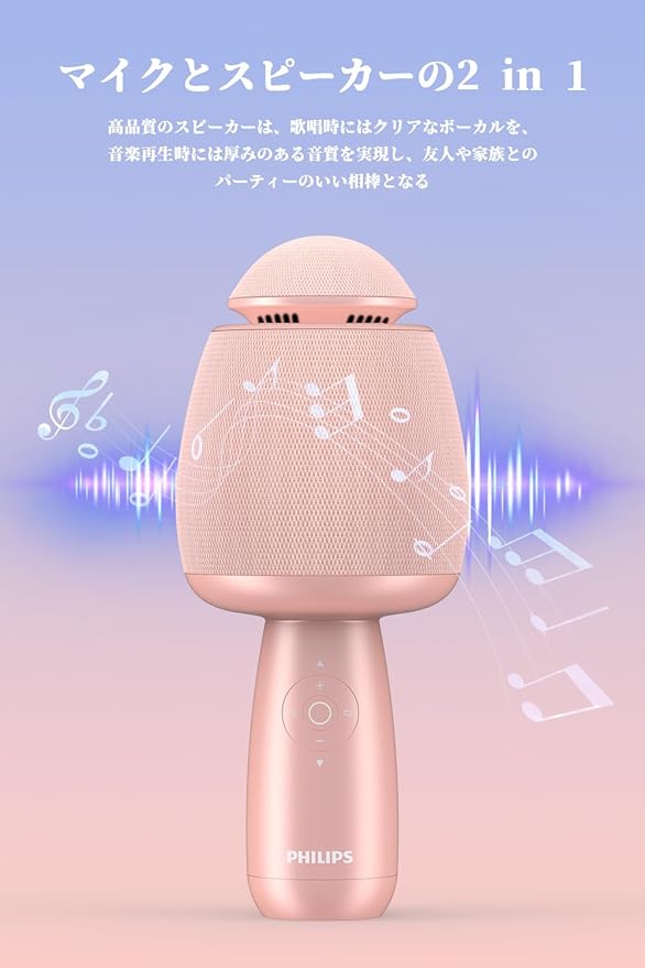 Philips (フィリップス) カラオケマイク Bluetooth ワイヤレスマイク 無線カラオケ 2600mAh 充電式 エコー/デュエット/伴奏/音量調整/音楽再生機能付き 5種のサウンドモード 家庭/パーティー用 携帯便利 Android iPhoneに対応 (ピンク) a | PCBASE