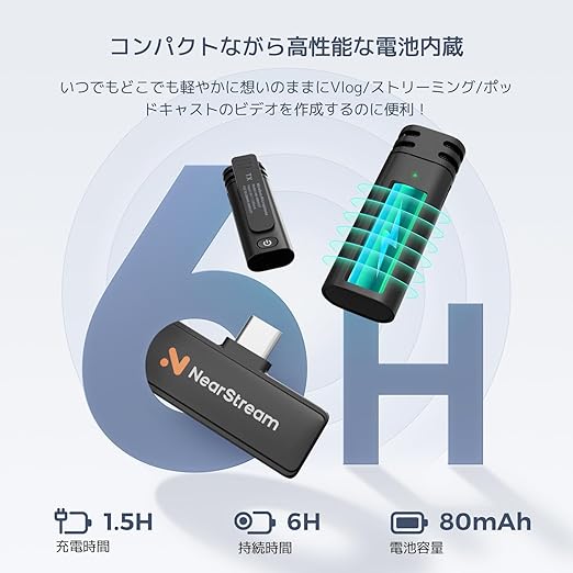 【自動ペアリング・超ミニワイヤレスマイク】NearStream AWM10Tはレシーバー1台とトランスミッター2台で構成され、電源を入れると自動的にペアリングでき、追加の手順は必要なくて初心者も使いやすいです。 ユニークなクリップ式により、衣服に簡単に取り付けてさまざまなコンテンツ制作用途にぴったり。しゃべりながら動画を撮る場合、両手を動かしたり、歩いたり、動きながら撮影としたいという場面などクリエイターの創造性を解き放つワイヤレスピンマイクになります。