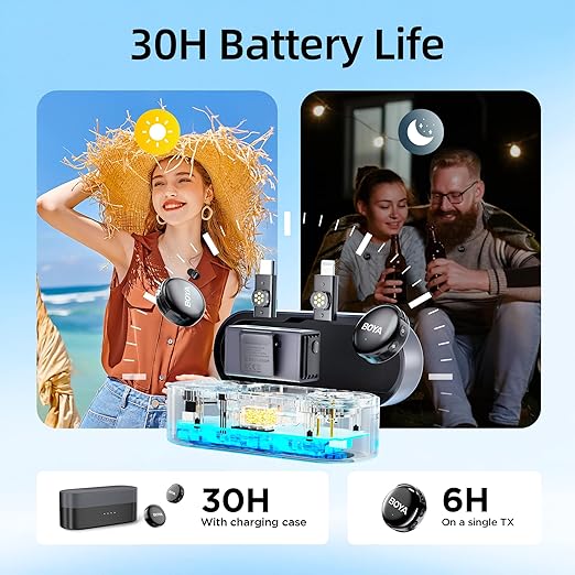 【AIノイズキャンセリング性能】AI駆動のLow/Medium/Highモードで70万種類以上の環境音(交通騒音・風切り音・突発音)を自動検出・除去。RXボタンのダブルクリックかBOYA Centralアプリで即時切替可能。120dBの騒がしい環境でも音声クリア性を保持し、ライブ配信・野外撮影・イベント収録に最適。