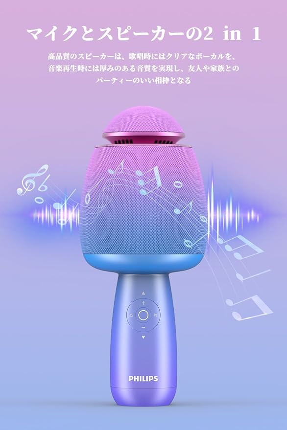 Philips (フィリップス) カラオケマイク Bluetooth ワイヤレスマイク 無線カラオケ 2600mAh 充電式 エコー/デュエット/伴奏/音量調整/音楽再生機能付き 5種のサウンドモード 家庭/パーティー用 携帯便利 Android iPhoneに対応 (ブルー) a