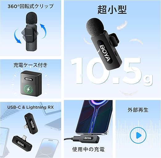 【持ち運びに便利なパワー】スリムで軽量なデザイン、わずか10.5gのマイクで快適に、手間なく着用