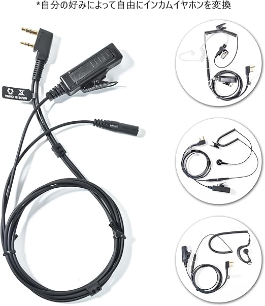 【ケンウッドやBaofeng用】Kenwoodの特定小電力トランシーバーやBaofengの2ピン仕様の無線機と組み合わせてお使い頂けます。