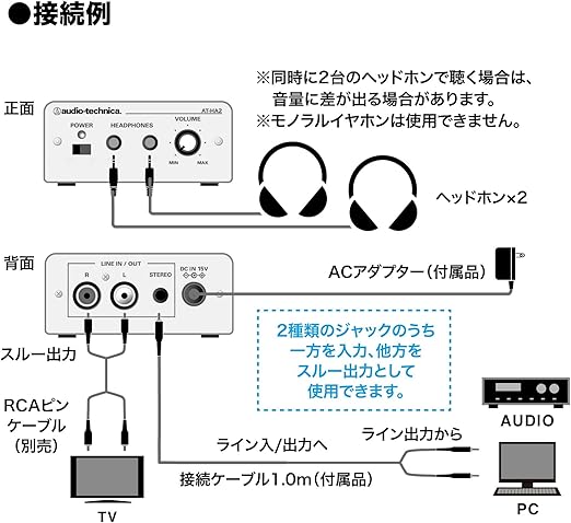 ヘッドホン端子のないAV機器でライン出力からヘッドホンモニターが可能。
