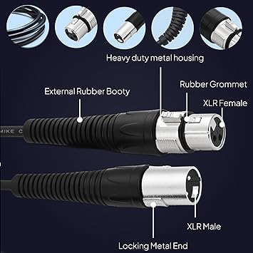 CAROL XLRマイクロフォン・ケーブル(メス-オス)#1090072 -マイク・ケーブル 6メートル|ブラック|3ピース一体型デザイン|XLRプリアンプおよびオーディオ・アクセサリーに対応 a | PCBASE