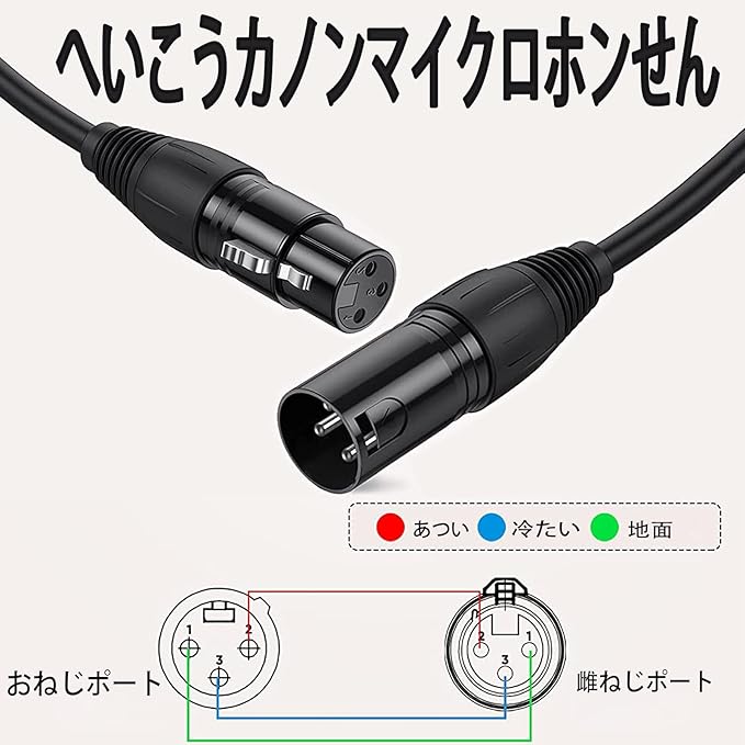 【xlrマイクケーブル】マイクケーブル1M(オス-メス)は全てのXLRコネクタ(3ピン)が搭載する機器に対応します。カラオケマイクやエレキギターなど主な楽器に使われてます。音源のレコードやCDプレーヤーやアンプ、楽器、マイクロフォンなどや、録音や編集機器であるミキシングやコンソール、エフェクター、DAT、また出力機器であるスピーカーやヘッドフォンの接続に好適なオーディオ用ケーブルです。