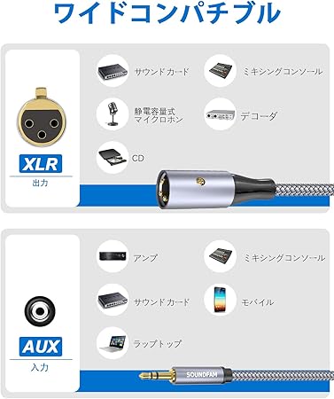 3.5mm to xlrケーブル, SOUNDFAM XLRオスから3.5mmオスケーブル アンバランスマイクケーブル マイクコード カムコーダー/DSLRカメラ/パソコン録音機器用 グレー(1M) a | PCBASE
