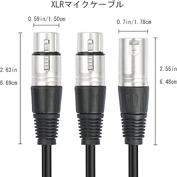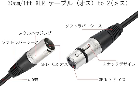 マイクケーブル, EIGHTNOO XLRケーブル キャノンケーブル マイクXLR (オス) to 2-XLR(メス) XLR ケーブル 分岐 30cm 3ピン Y型 XLR バランスケーブル マイク録音用 プロ録音 コンデンサマイク等 a | PCBASE